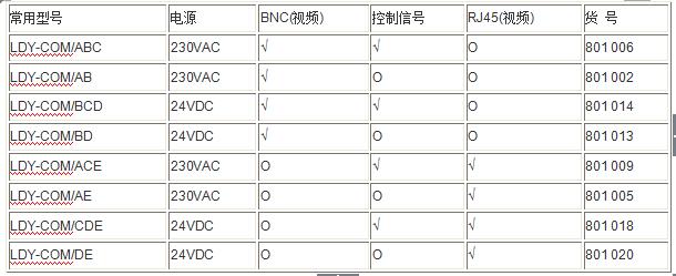 功能描述和货号(√:表示有该功能 O:表示无该功能)