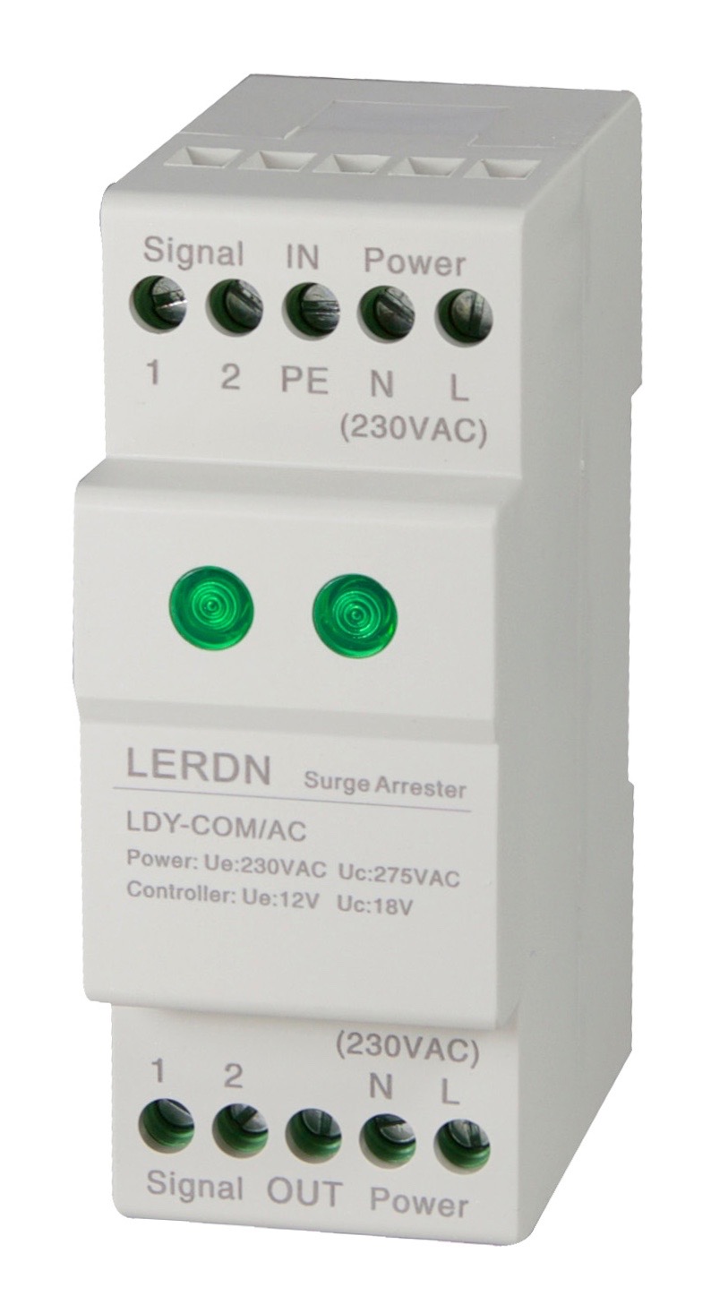 LDY-COM系列三合一综合防雷器适用于监控等系统的电源、控制信号、 BNC视频信号及以太网的防雷保护,具有较低的限制电压,快速响应等特点, 可减轻和防护来自电源线和控制线的感应雷击或其它浪涌过电压对被保护设 备带来的危害。广泛应用于安防监控、电信全球眼、数据机房等领域。